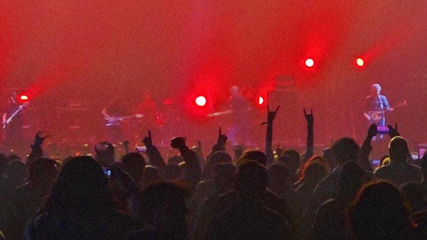 I woke up today with another thought, a similar thought, that rock concerts are probably the closest I have felt to true religion. I spent the evening at one last night, and the sight of my own hands naturally folded as if in prayer made me think that these horns I could see in the crowd were nothing short of mudras, gestures of connection between the body and soul. As the songs went on, I noticed myself clutching my necklace, a black cross I picked up in the name of Ozzy Osbourne, as if it was a talisman blessed by the Rockstar himself. Is it different from any other talisman bought in the name of faith?